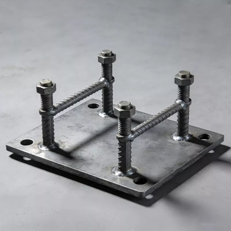 Ingebedde stalen plaat: dikte 6 mm ~ 50 mm, lengte en breedte 100 mm × 100 mm ~ 1000 mm × 1000 mm (ondersteuning voor speciaal gevormd snijden); 2. Ingebedde bout: specificatie M10~M64, lengte 100mm~2000mm, draadprecisie 6H;3. Ingebed steun-/verbindingsstuk: gatdiameter, gatafstand en vorm aangepast volgens tekening, totale maattolerantie ≤± 0,3 mm