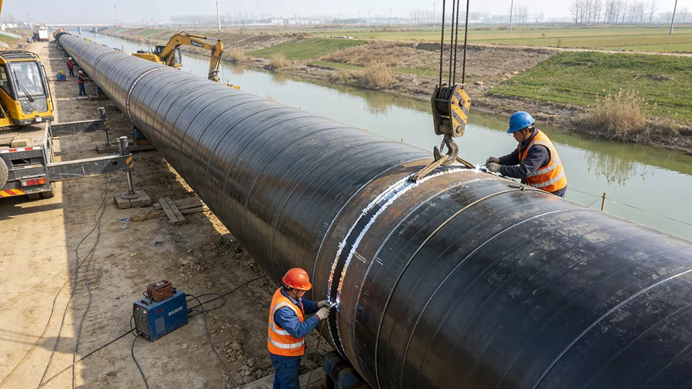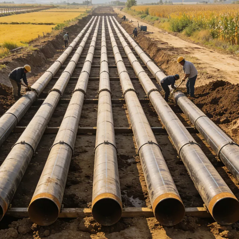 Toepasbare scenario's: Grootschalige wateromleidingsprojecten, wateroverdrachtsprojecten, projecten voor overstromingsbeheersing en drainage, hoofdpijpleidingen voor irrigatie van landbouwgrond, watervoorzieningsprojecten voor drinkwater, watervoorzieningsprojecten op eilanden, enz. De kernvereisten zijn een hoge stroomcapaciteit, corrosieweerstand en weerstand tegen waterdruk. Ze kunnen worden aangepast aan complexe omgevingen zoals rivierbeddingen, door zout aangetaste gebieden, enz. Ze kunnen effectief watererosie en geologische verzakkingen weerstaan, waardoor de stabiele overdracht van watervoorraden wordt gewaarborgd en de veilige werking van waterbeschermingsprojecten wordt gegarandeerd. Ze spelen een belangrijke ondersteunende rol in belangrijke nationale waterbeschermingsprojecten. Scènebeschrijving: Op de bouwplaats van het Jinghai Water Diversion Project worden spiraalbuizen met grote diameter gebruikt voor het leggen van hoofdleidingen. De leidingen lopen door rivieren of landbouwgronden en werknemers voeren een afdichtingsbehandeling uit. Op de locatie van het watervoorzieningsproject op het eiland worden spiraalbuizen met grote diameter en 3PE-anticorrosietechnologie gebruikt om zeewatererosie tegen te gaan en de verbinding van watervoorraden tussen het eiland en het vasteland te bewerkstelligen.