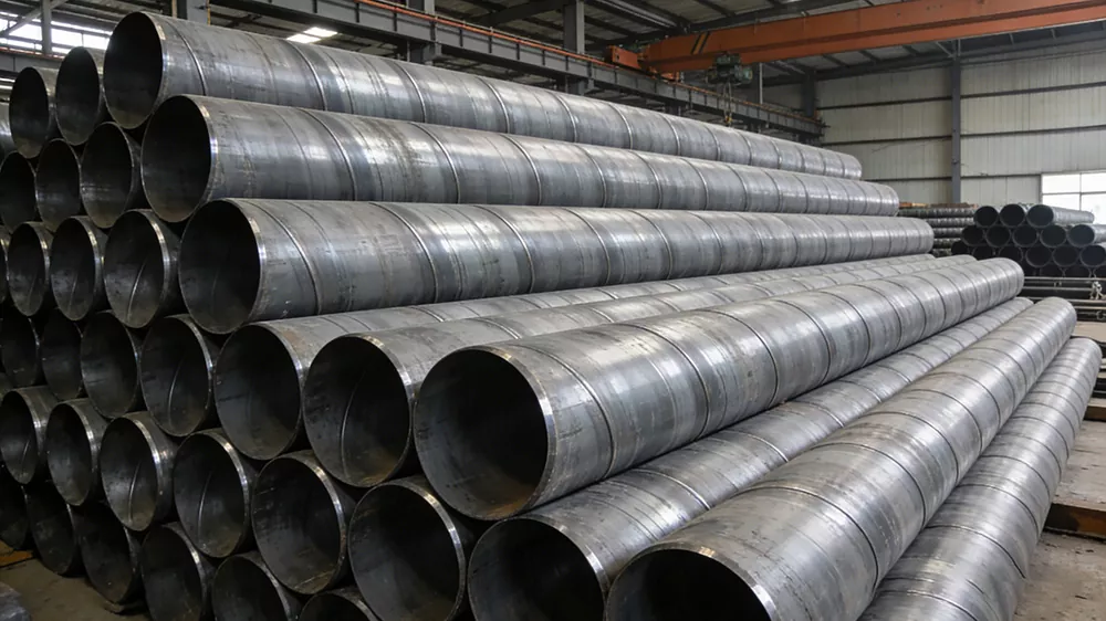 Spiraalvormige buis met grote diameter (ook bekend als spiraalgelaste buis met groot kaliber) is een type stalen buis met spiraalnaad, gemaakt van hoogwaardige warmgewalste staalbandplaten als kerngrondstof. Het wordt gevormd door koude extrusie bij kamertemperatuur en vervolgens gelast met behulp van een automatisch dubbeldraads dubbelzijdig ondergedompeld booglasproces. De kerndefinitiestandaard is een buitendiameter van ≥ 711 mm (overeenkomend met een nominale diameter van DN700 en hoger). Het kan worden aangepast tot een buitendiameter van maximaal 3620 mm of zelfs grotere specificaties, afhankelijk van de technische vereisten. Het is een samengesteld staalproduct dat draag- en transportvermogen combineert. De kernfunctie ervan is het realiseren van langeafstandstransport met hoge stabiliteit van grote volumes vloeistoffen (zoals water, olie, gas, rioolwater, enz.), en kan ook dienen als een structureel ondersteunend onderdeel voor grootschalige projecten, waarbij het zich aanpast aan complexe werkomstandigheden en zware omstandigheden. Met zijn unieke spiraalstructuurontwerp vult het de leemte in de industrie op het gebied van efficiënte productie en stabiele toepassing van pijpmaterialen met grote diameter, en wordt het veel gebruikt in verschillende infrastructuur- en industriële scenario's.