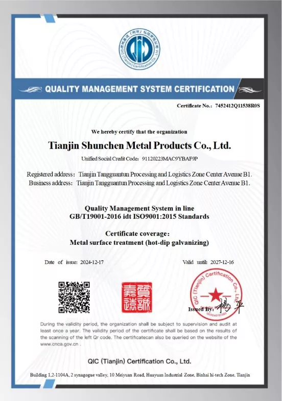 Tianjin Shunchen Industrial Company is een alomvattend industrieel ketenbedrijf. Het hoofdkantoor, opgericht in 2014, bevindt zich in de Daqiuzhuang Industrial Zone, een belangrijke staalhub in China. De activiteiten van het bedrijf bestrijken meerdere terreinen, waaronder de diepe verwerking van staalproducten en de productie en verwerking van thermisch verzinken. Haar dochterondernemingen onderhouden het hele jaar door een gegalvaniseerde voorraad van meer dan 20.000 ton, waarmee ze een grootschalige supermarkt van gegalvaniseerd staal opzetten die opslag en distributie integreert. Door speciaal gevormde achthoekige staven te selecteren, kan Shunchen Industrial u hoogwaardige producten en professionele diensten bieden.